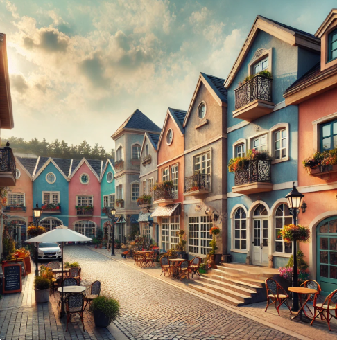 파주의 대표적인 관광 명소 중 하나인 프로방스 마을은 알록달록한 유럽풍 건물들이 모여 있는 감성적인 장소입니다. 곳곳이 사진 찍기 좋은 포토존이라 연인, 친구, 가족과 함께 방문하면 좋은 추억을 남길 수 있습니다.