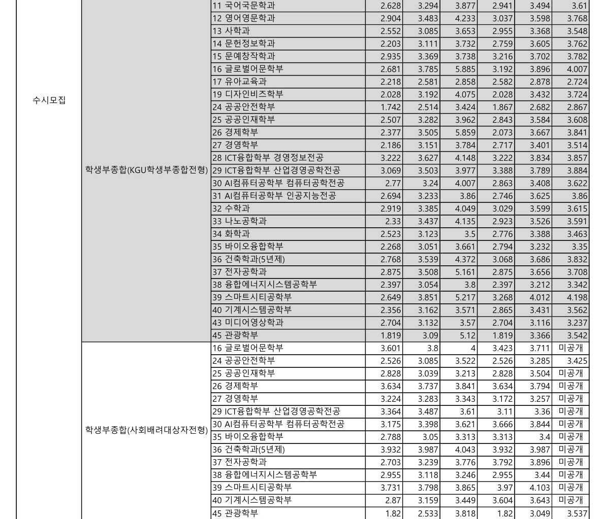 다음은 경기대학교 KGU 학생부 종합전형의 결과입니다.