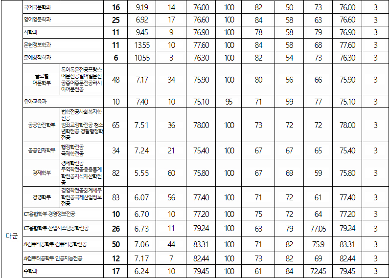 다음으로 경기대학교 정시 다군의 결과를 살펴보겠습니다.